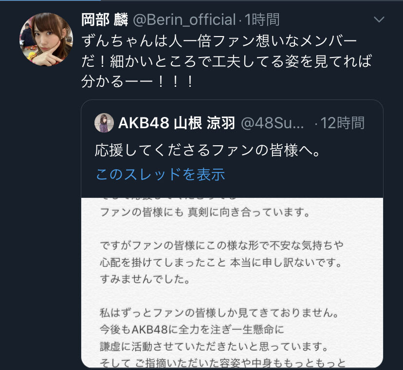 チームAキャプテン岡部麟「山根涼羽は人一倍ファン想いなメンバーだからジャニーズと繋がってるわけない」 ! 1: 2019/11/24(日) 19:19:46.30 .net https://twitter.com/Berin_official/status/1198471984520105984 続きを読む COME ON!! Share this post
