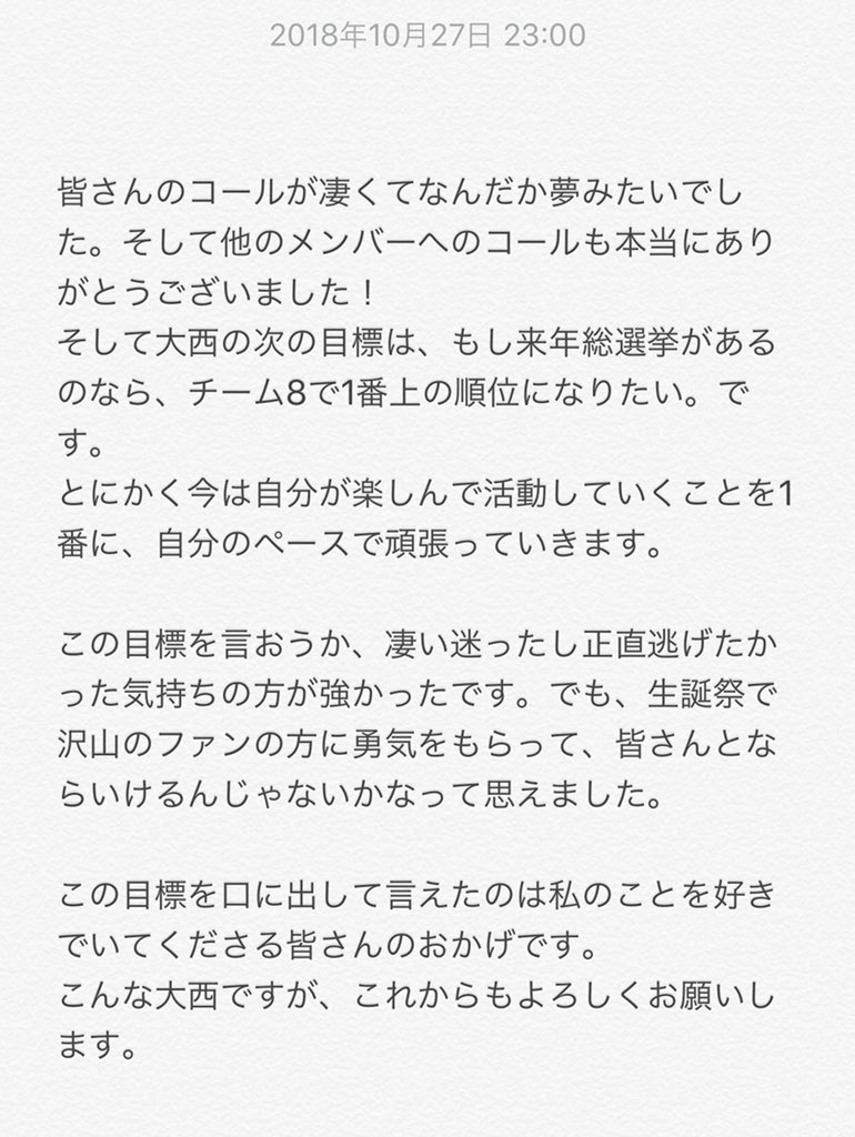 大西桃香「次の目標は、もし来年総選挙があるのなら、チーム8で1番上の順位になりたいです」 ! 1: 2018/10/28(日) 00:02:16.93 .net 大西桃香 @momo_0x0_920 今日は生誕祭がありました! 少し長くなったので4枚目の写真をよかったら見てください🙇?♀? 本当に今日はありがとうございました! 大大大好きです☺?✨ 続きを読む COME ON!! Share this post