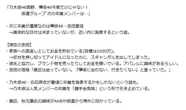 【悲報】志田愛佳さん卒業濃厚と報道