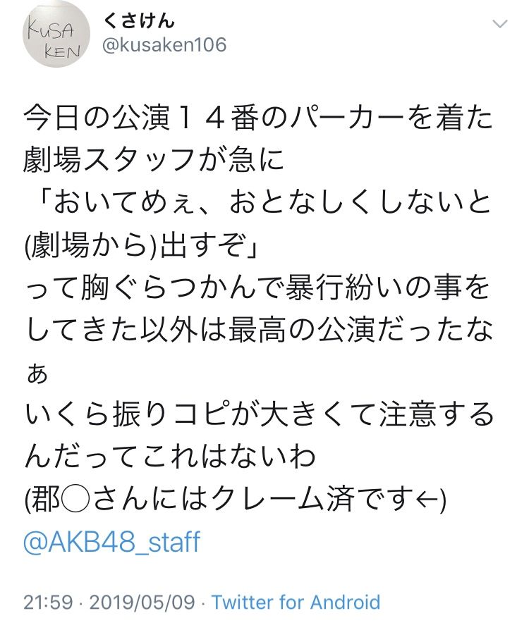 【悲報】AKB劇場スタッフが客の胸ぐらを掴む !
