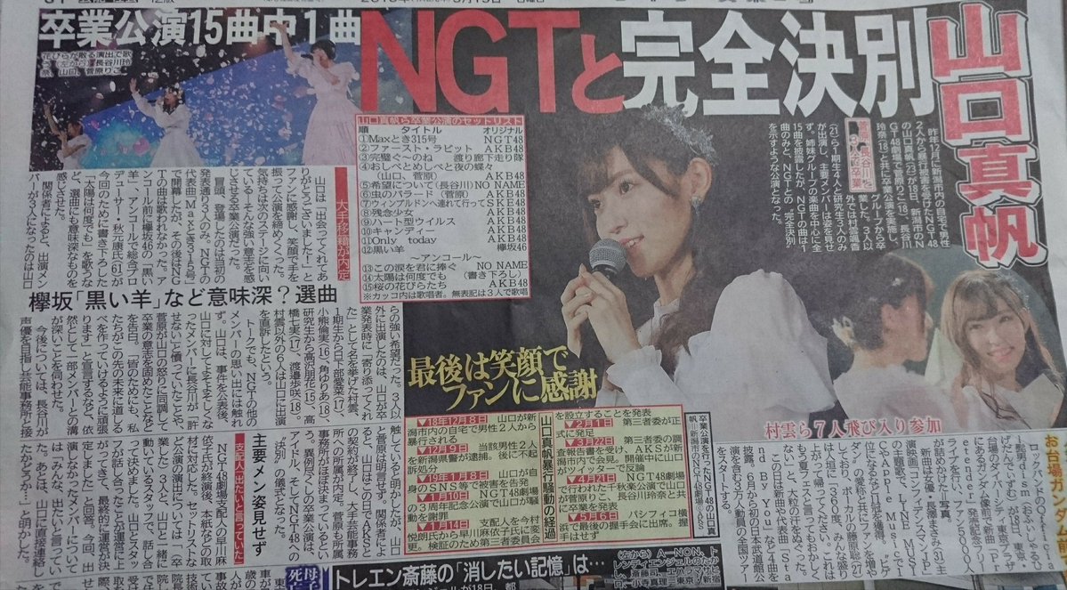 早川支配人「みんな出たいと言っていた。あとは山口に直接連絡したかどうか・・・」 ! 1: 2019/05/19(日) 04:10:36.35 .net 山口真帆NGTと完全決別 続きを読む COME ON!! Share this post