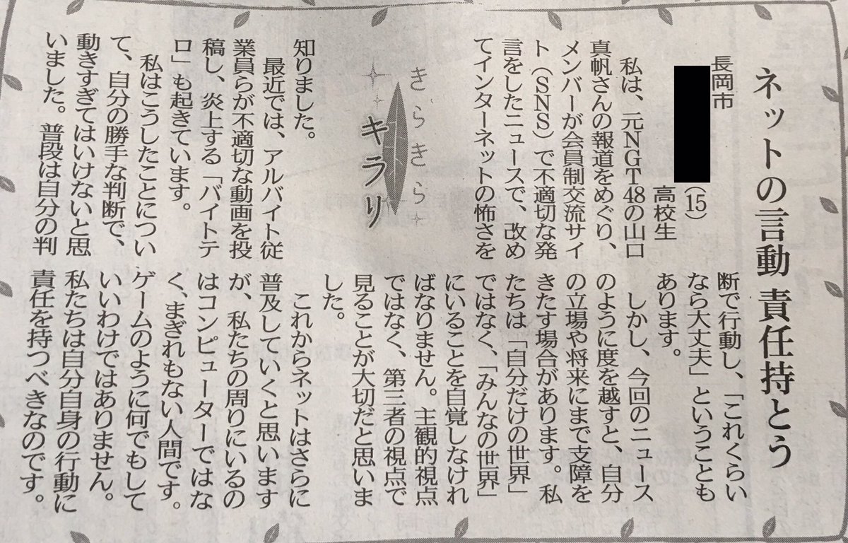 【NGT暴行事件】かとみなの失敗を見て学ぶ高校生の記事・・・ ! 525: 2019/06/03(月) 06:47:49.89 .net 本日の新潟日報 続きを読む COME ON!! Share this post