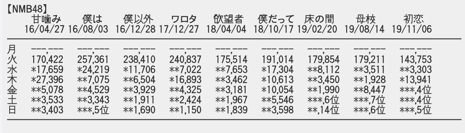 【悲報】NMB48「初恋至上主義」5日目デイリー4位。また枚数出ず・・・ 支店最下位が決定的に