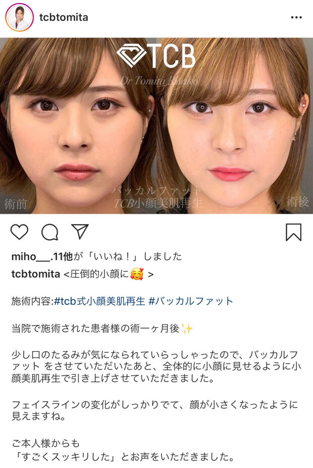 ※口の中から脂肪を切り取って糸を入れて上に引っ張る美容整形